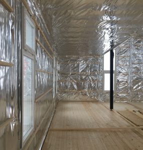 Мы оборачиваем этот каркас слоем утеплителя толщиной не менее 30 см из экологически чистых материалов, таких как минеральная вата, дополненный защитными мембранами для обеспечения оптимальной тепло- и звукоизоляции и защиты от погодных условий.